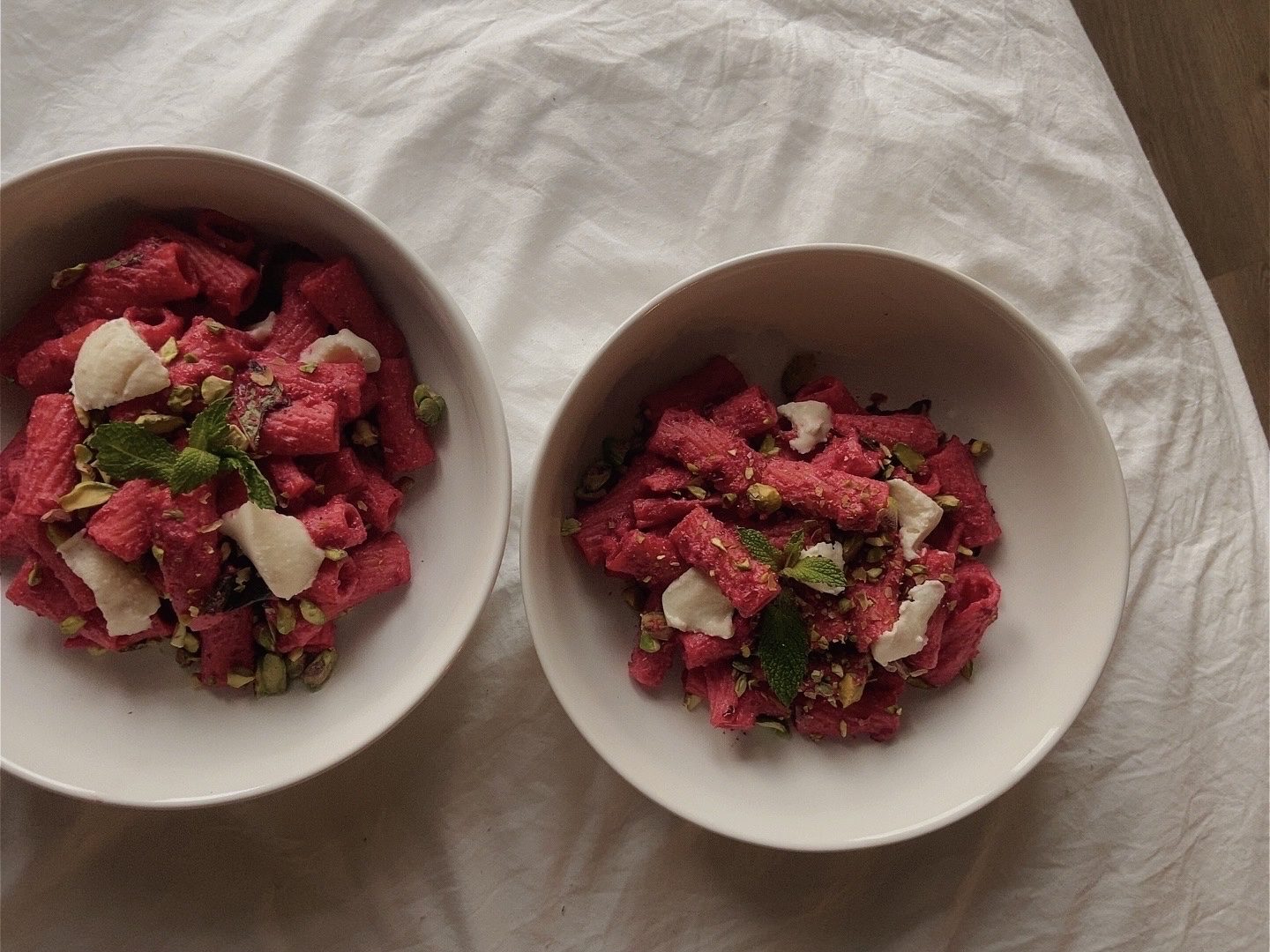 Creamy beat ricotta pasta with an organic splash of pink is just the perfect dish for girl dinners! This recipe makes about 4 servings. Double or half the recipe to adjust serving size.